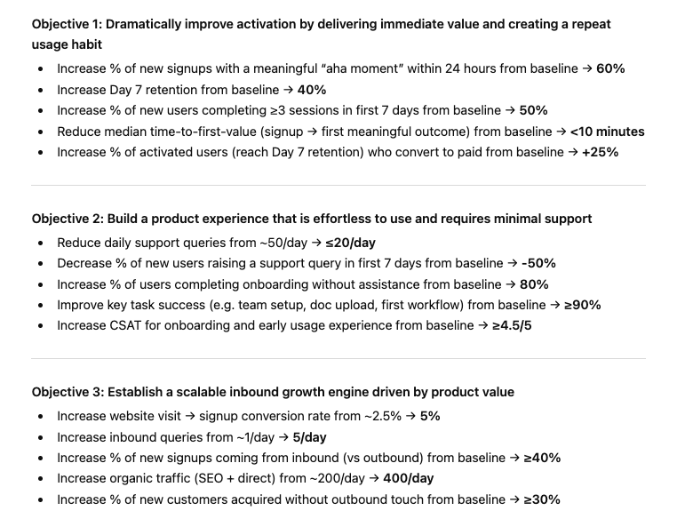 When I first tested AI-generated OKRs for a SaaS product, I gave it this: