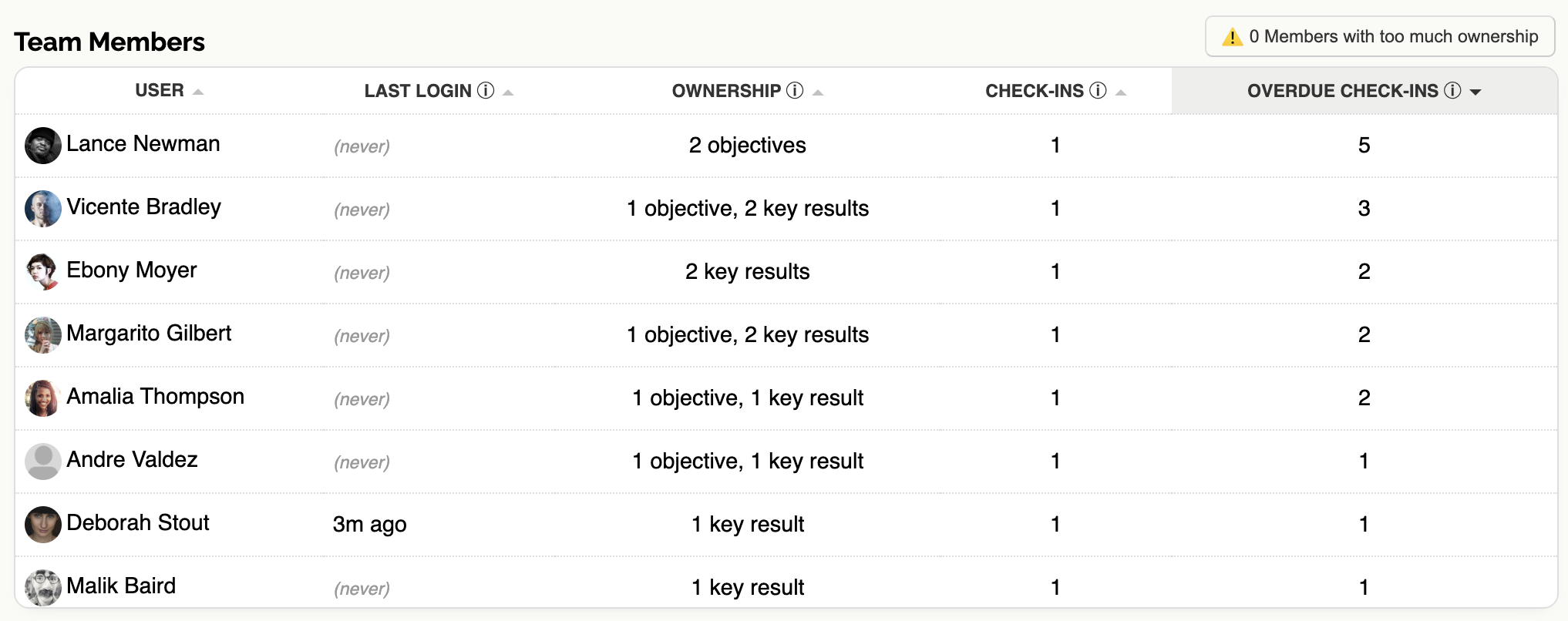 If a team carries too many OKRs, the Report flags it. This enforces a simple constraint: focus drives progress. When a team exceeds three Objectives, you see the risk immediately and can correct it.